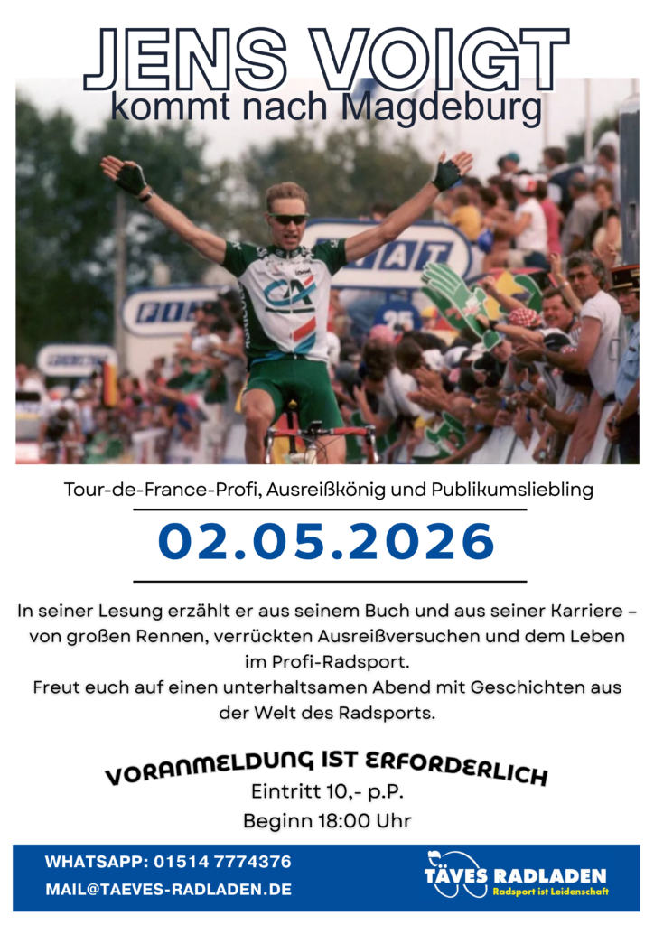 Am 02.05.2026 begrüßen wir eine echte Radsport-Legende bei uns in Magdeburg: