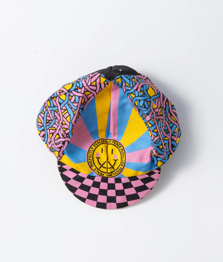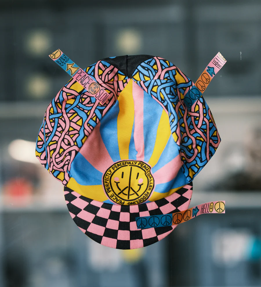 Eine hochwertige Radmütze mit einer tiefgründigen Botschaft. Kann entweder offen für zeitlosen Stil oder flach unter dem Helm getragen werden. Werde zum Fahrradboten des Friedens!