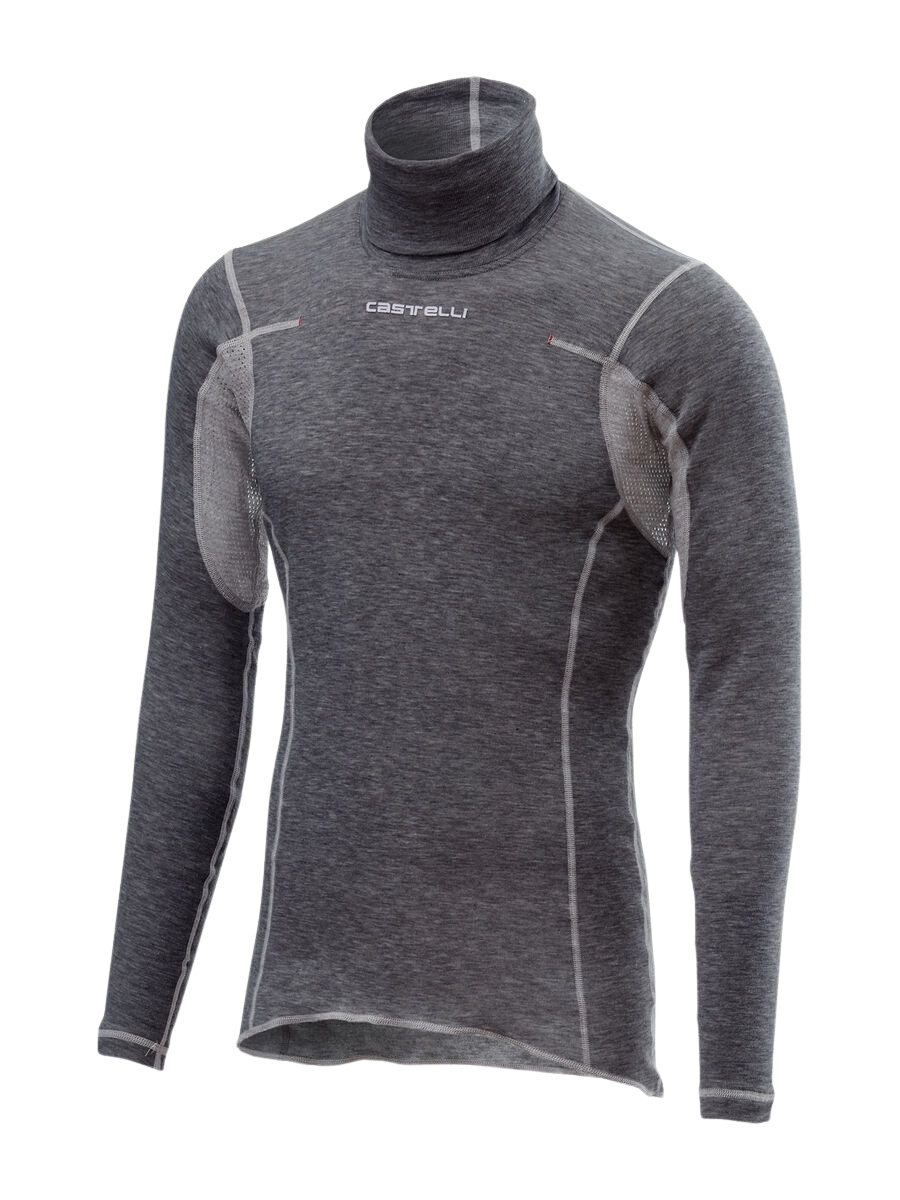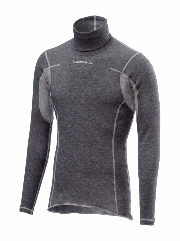 Das Castelli Flanders Warm Neck Warmer ist ein weiteres Produkt, dass durch die Zusammenarbeit mit dem Team Ineos entstanden ist. Als Basis diente Castellis wärmstes Unterhemd (Flanders), das die Designer im Prinzip um einen Nackenwärmer erweitert haben. An kalten Tagen nutzt man es als Rollkragenversion, um beispielsweise unangenehme Zugluft im Jackenkragen zu vermeiden. Bei extremer Kälte kann der Rollkragen aus SottoZero Fleece Material bis über das Gesicht gezogen werden, um sich bestmöglich zu schützen.