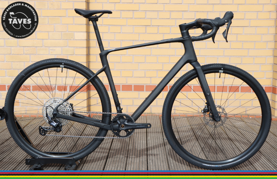 Shimano GRX 12-fach Power: Der neue, breit gefächerte GRX 12-fach Antrieb von Shimano bietet eine enorme Übersetzungsvielfalt. Egal ob steiler Anstieg oder High-Speed-Passage – du hast immer den richtigen Gang parat.