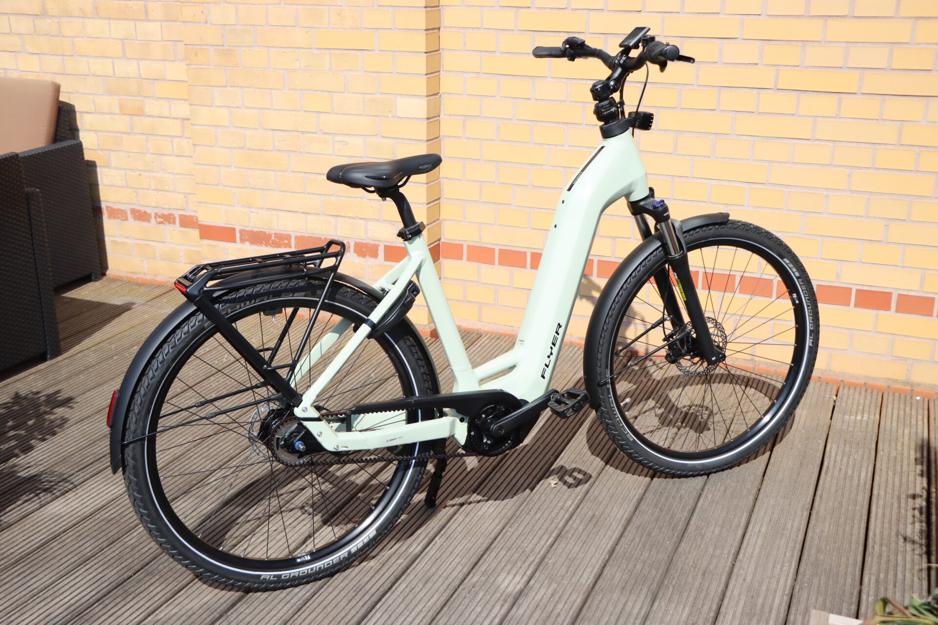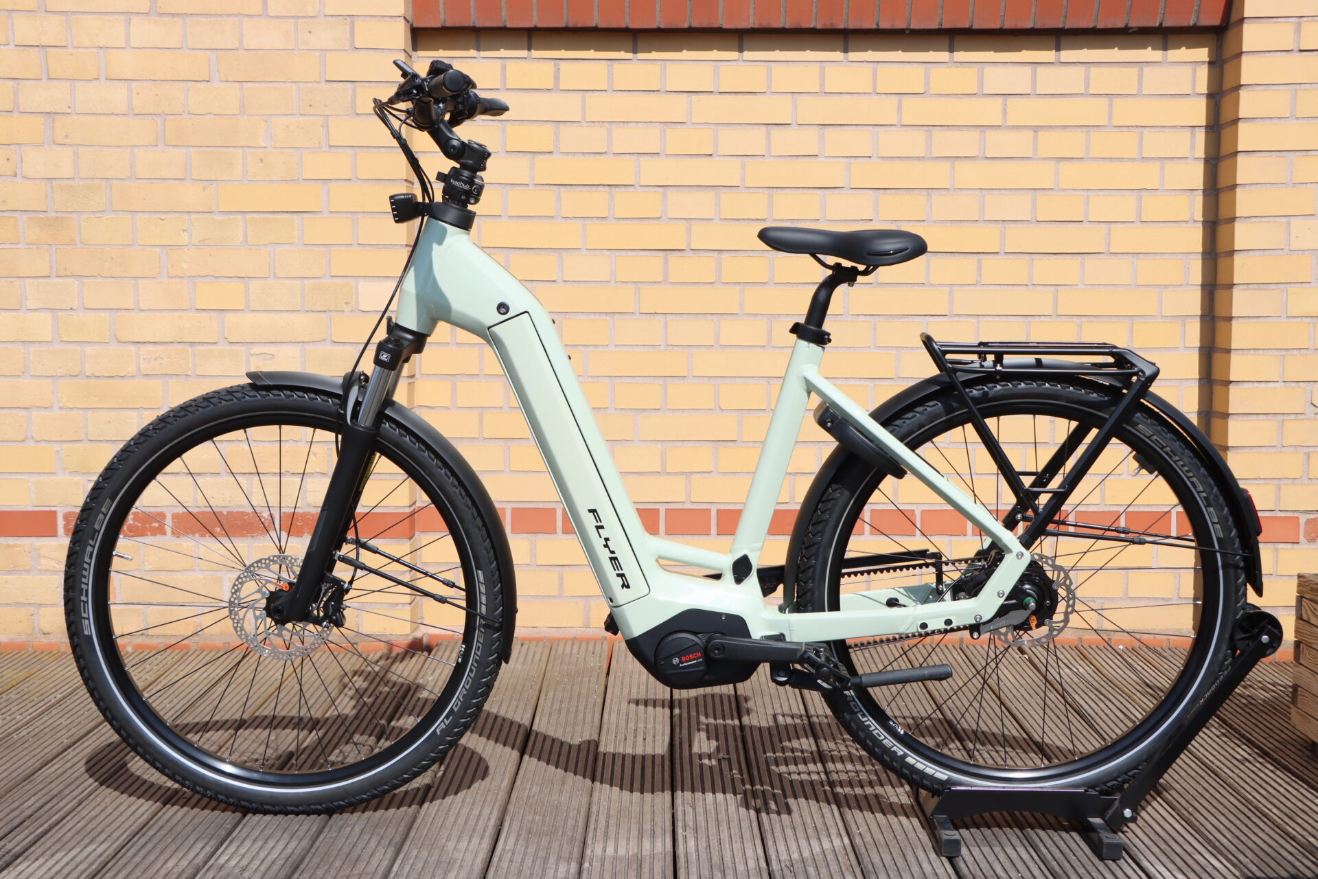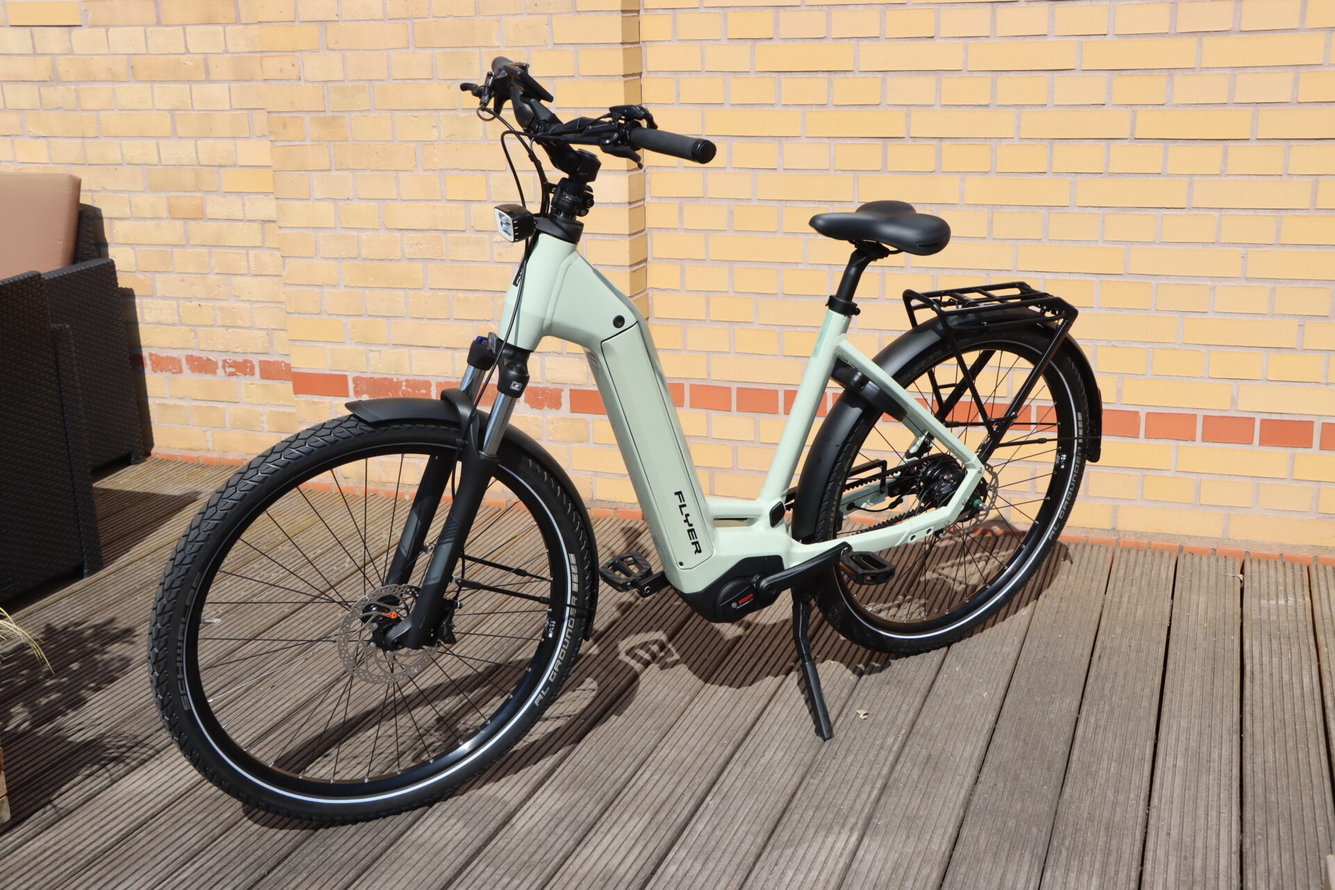 Vollalltagstauglich & Sicher: Der robuste Gepäckträger trägt bis zu 27 kg und ist offiziell für Kindersitze zertifiziert. Die leistungsstarke, integrierte FLYER-Lichtanlage sorgt zudem für beste Sichtbarkeit bei jeder Witterung.